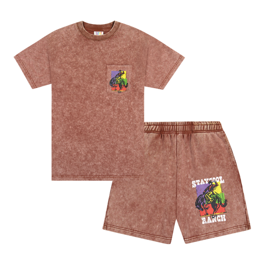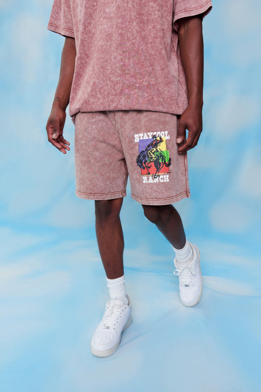 Ranch Acid Wash Shorts (Chocolate)